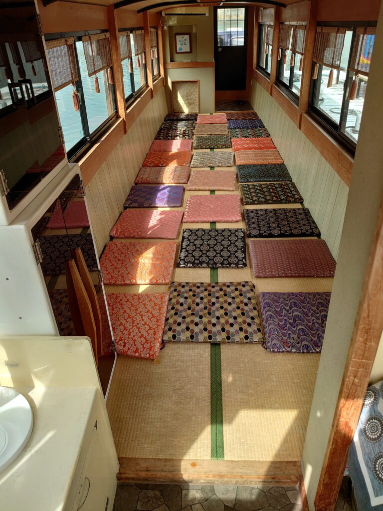 代替え船「源頼朝号」は、お座敷船となっておりますので入口で靴を脱いでのご乗船となります。