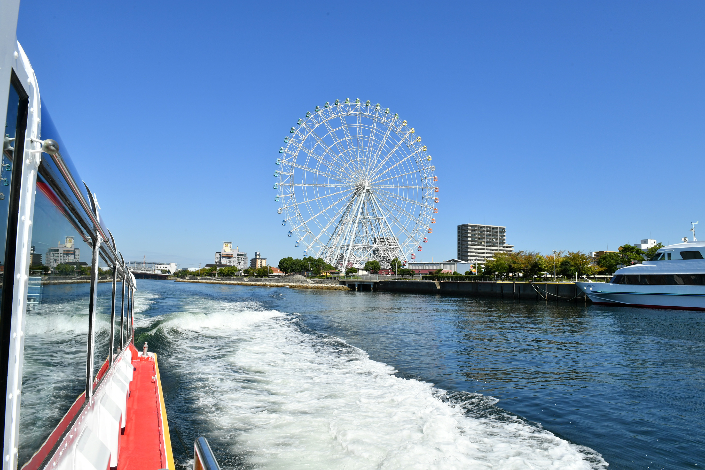 Not only can you see the giant Ferris wheel, you can also view the Port of Nagoya Public Aquarium from the water!